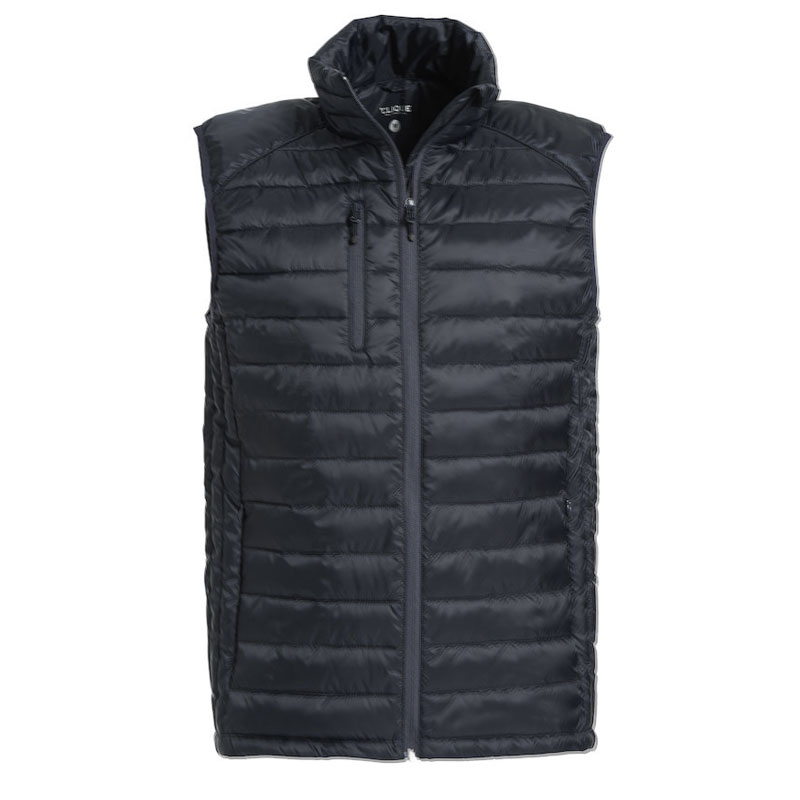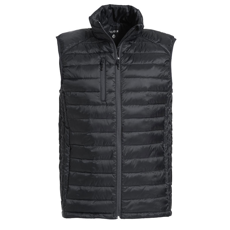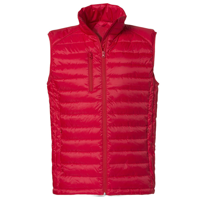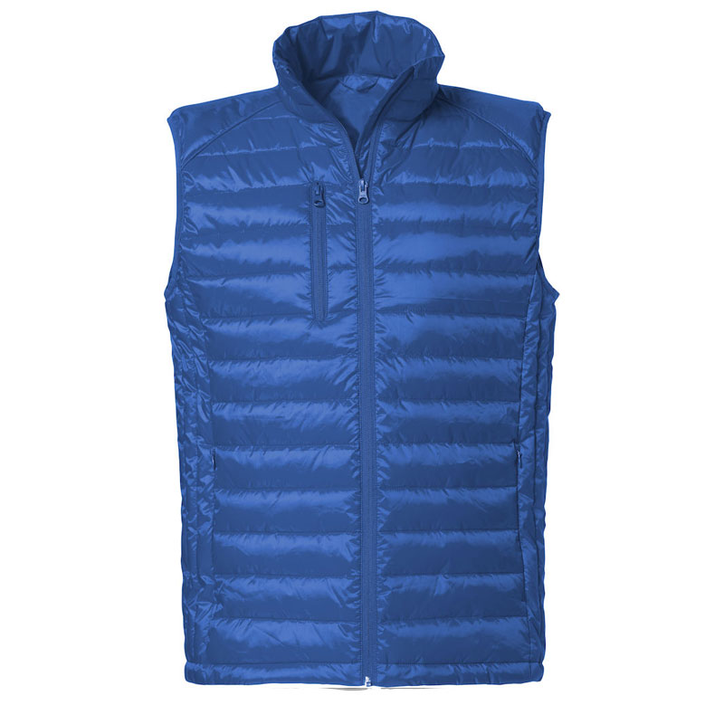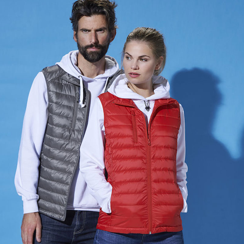 Eine moderne Weste mit daunenähnlicher Wattierung. Praktische Details, wie drei Außentaschen mit Reißverschluss und zwei Innentaschen. Kopfhörer-Schlaufe im Nackenband. Waschbar bis 40°C