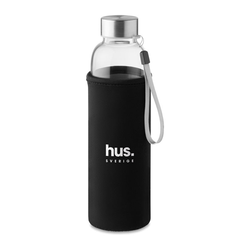 Neopren- Schutzhülle. Füllmenge: 500 ml. Nicht geeignet für kohlensäurehaltige Getränke. Auslaufsicher. Eine Lasergravur ist auf Borosilikatglas nicht möglich.